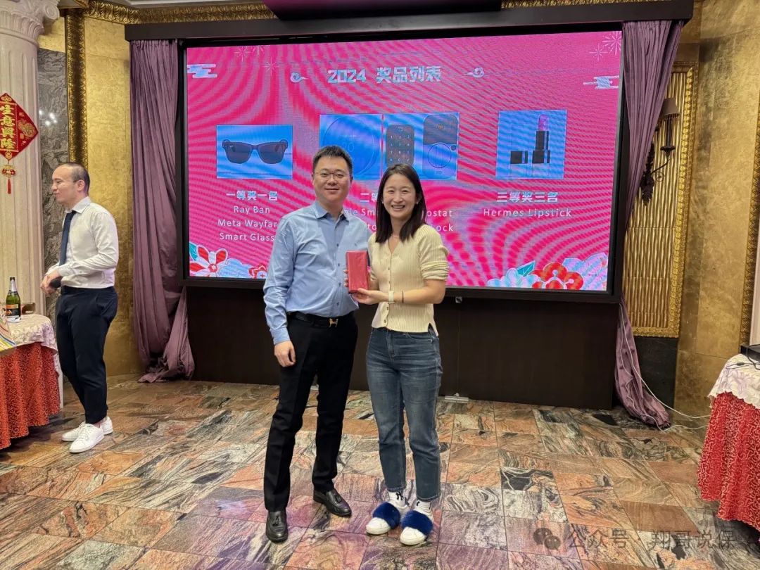 更令人期待的是,晚宴上还设置了精彩纷呈的抽奖活动。三等奖有三位得主有幸抱得美好礼品,二等奖更是让两位幸运者惊喜连连,而一等奖的幸运儿更是荣获大奖,让整个晚宴达到了高潮。